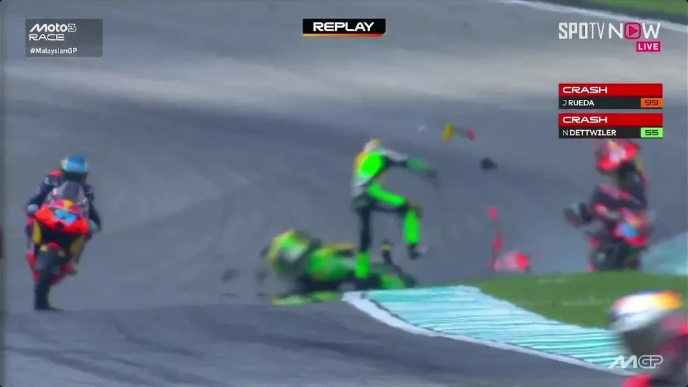 Hai tay đua MotoGP đã phải nhập viện cấp cứu bằng máy bay trực thăng sau một vụ tai nạn kinh hoàng xảy ra ngay trước khi cuộc đua Malaysian Grand Prix ở Sepang bắt đầu.